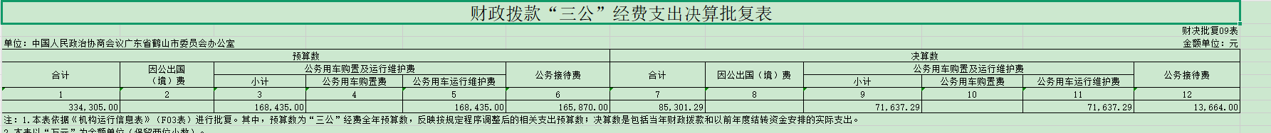2024年度中國人民政治協(xié)商會議廣東省鶴山市委員會辦公室財政撥款“三公”經(jīng)費支出決算表