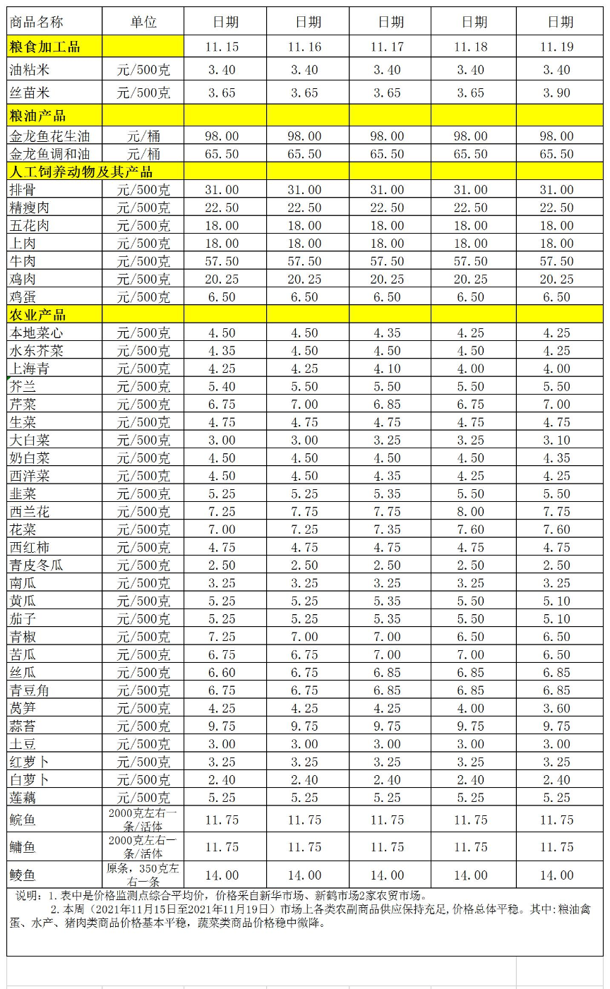 百姓菜籃子價格動態(tài)(11.15-11.19)