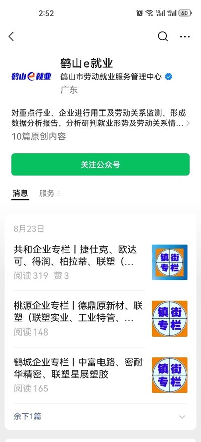 (一)微信掃碼或搜索“鶴山e就業(yè)”公眾號。