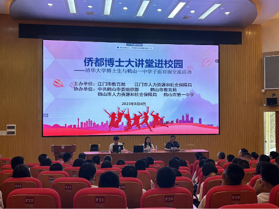 8月4日上午,由江門市教育局、江門市人力資源和社會(huì)保障局主辦,中共鶴山市委組織部、鶴山市教育局、鶴山市人力資源和社會(huì)保障局、鶴山一中協(xié)辦的“僑都博士大講堂進(jìn)校園(鶴山專場(chǎng))”順利舉行。本次活動(dòng)邀請(qǐng)2名清華大學(xué)在讀博士生為鶴山市 2024 屆高考備考師生開(kāi)展以“樹(shù)立遠(yuǎn)大目標(biāo),堅(jiān)定奮斗決心”為主題的勵(lì)志宣講,幫助學(xué)子們調(diào)整心態(tài)、備戰(zhàn)高考。